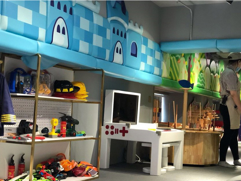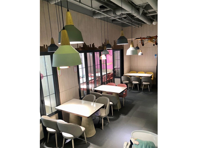 設計理念: 濟南森林象親子餐廳裝修施工完成效果圖以自然、溫馨為主題,門口有兩只小象在歡迎孩子們的到來,整個室內以自然色彩為主色調,里面還有一個小型的游樂場,能讓孩子們歡快的游玩。餐廳的墻上以卡通動漫為壁紙,激發孩子們的童真興趣。除此之外還有休息的地方,可以讓孩子們在童年的海洋里面暢游,在休息區還會有動畫片和玩具供孩子們游玩,餐廳的盤子、調味料盤瓶等一些也融合了卡通元素。